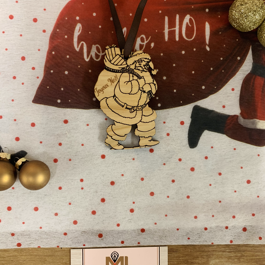 Apportez une touche joyeuse et festive à votre sapin avec cette boule de Noël en bois, finement sculptée en forme de Père Noël.