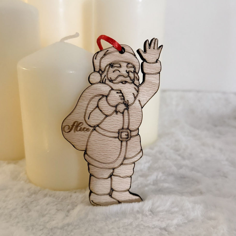 Apportez une touche joyeuse et festive à votre sapin avec cette boule de Noël en bois, en forme de Père Noël.